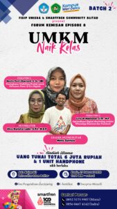 Kegiatan ini akan menghadirkan dua pemateri dari Dosen FISIP UNISBA Blitar yaitu Novita Putri Diantanti, S. Gz., MM dan Lu’lu Ul Maknunah, S.TP., M.P. Untuk diketahui, Forum Kemisan bersama Smartfren Community Blitar ini digelar tiga batch hingga Maret mendatang. Di akhir batch, akan dipilih tiga peserta untuk mendapatkan uang pengembangan usaha dengan total Rp6.000.000.